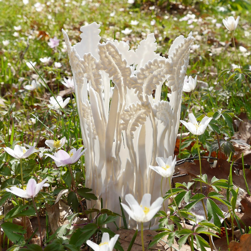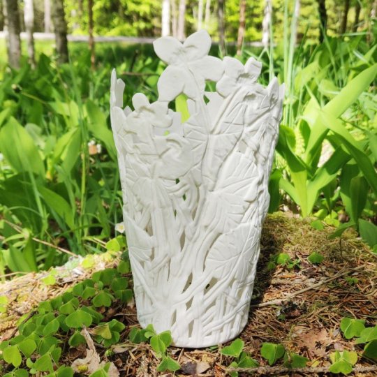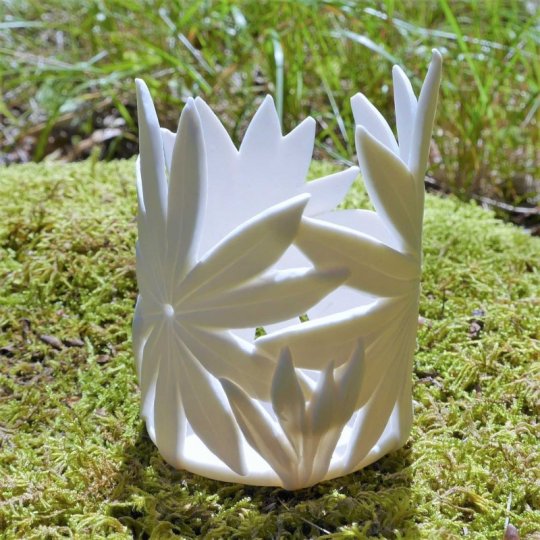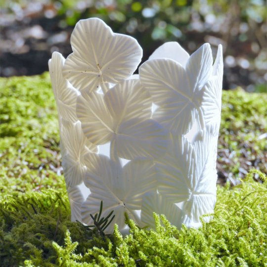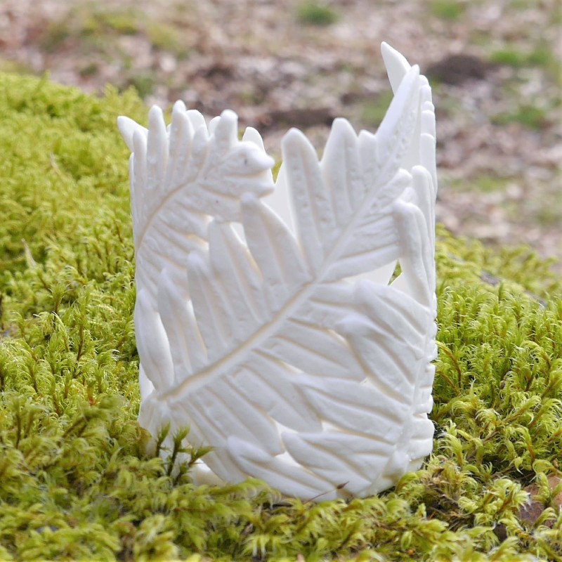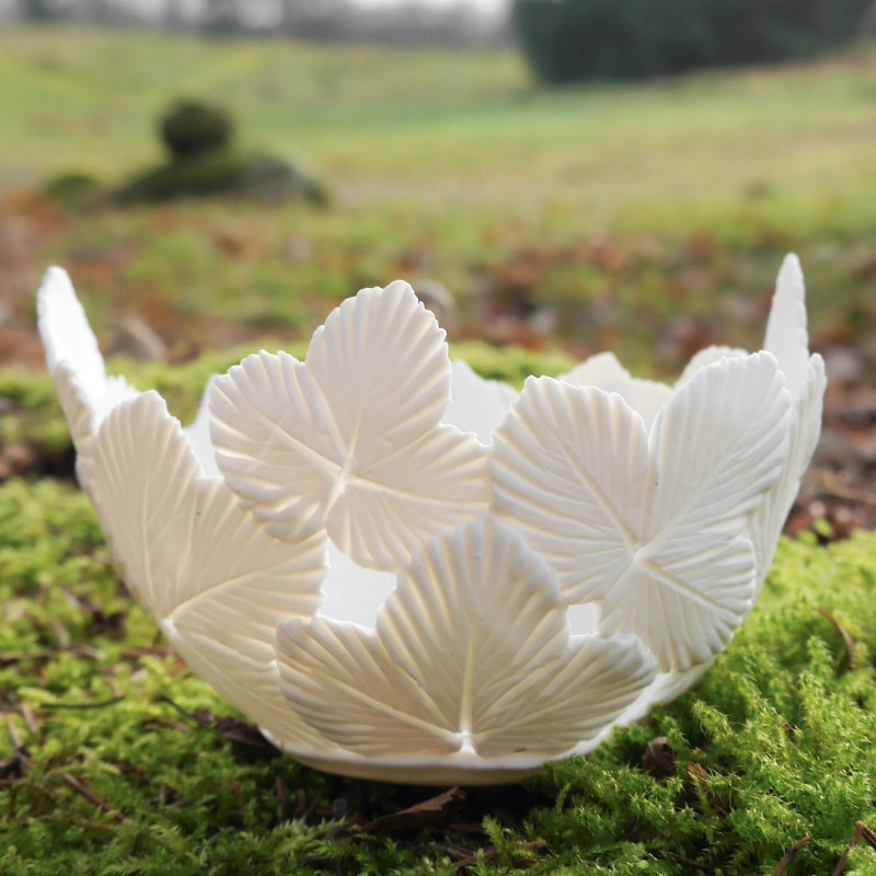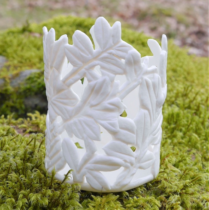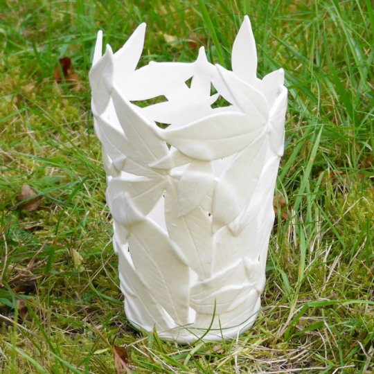 Porcelænsfiligran er min egenudviklede teknik, hvor jeg f.eks. arbejder med udskæringer af naturaftryk kombineret med minipølseteknik.