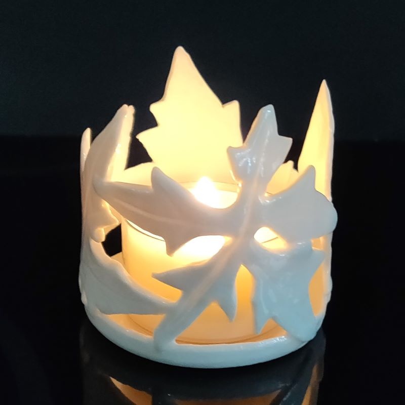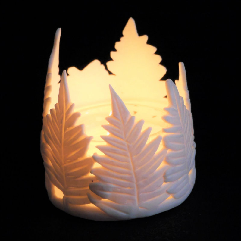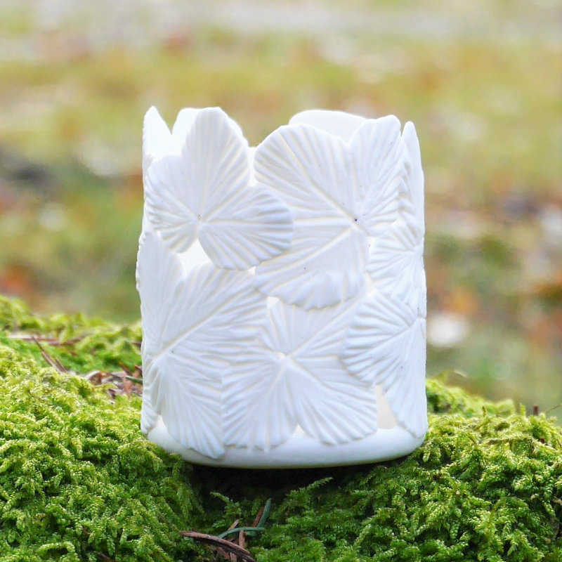Samtidig giver det højtbrændte porcelæn en fin transparens med et tændt fyrfadslys i.