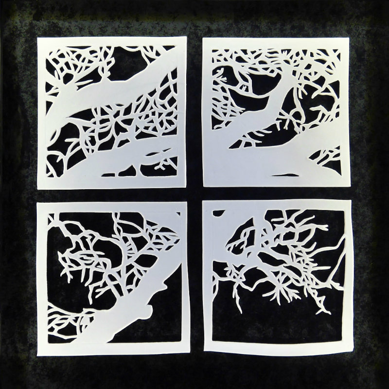 Jeg starter processen med at lave et antal kvadratiske udsnit af det udvalgte foto på min PC. Disse fotoudsnit forstørrer jeg op til den ønskede størrelse og laver så en stiliseret håndaftegning af hver af dem. Disse håndaftegninger overfører jeg nu til det udrullede porcelænspapirler.